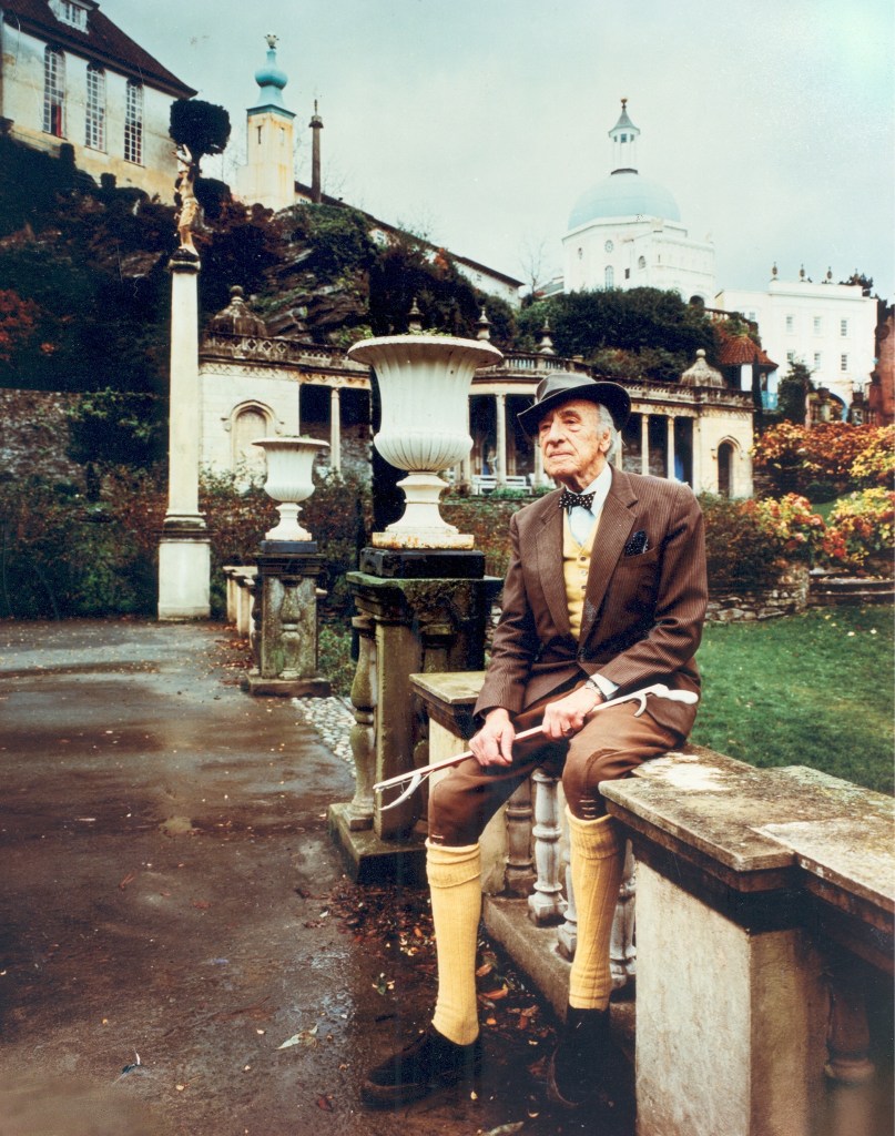 Eccentric architectural genius Clough Williams-Ellis in his trademark tweed suit and yellow socks