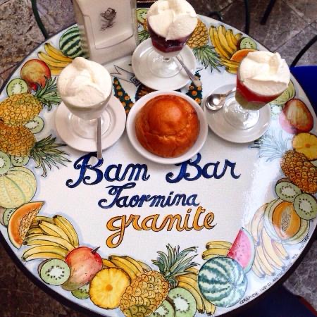 While Taormina isn’t short of cafes and bars serving granitas – the concoction was introduced by the Saracens who invaded Sicily from Tunisia in 827AD and was originally made with ice brought from Etna’s upper slopes – locals will tell you Bam Bar’s are the best.