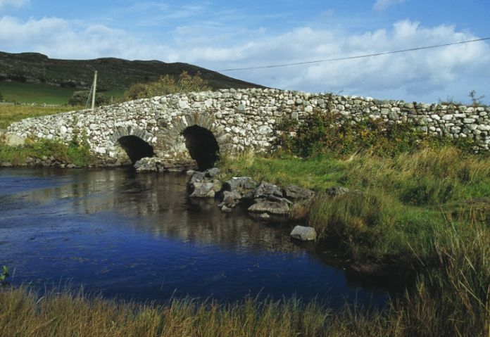 Sixteen kilometres southwest of Cong, between Maam Cross and Oughterard, is Leam Bridge, also known as The Quiet Man Bridge and unchanged in 60 years. This is where Sean sits and views White O’ Mornin’ while his late mother’s voice reminisces: “Don’t you remember, Seanie, and how it was? The road led up past the chapel and it wound and wound. And there was the field where Dan Tobin’s bull chased you. It was a lovely little house, Seaneen. And the roses! Well, your father used to tease me about them, but he was that proud of them too.”