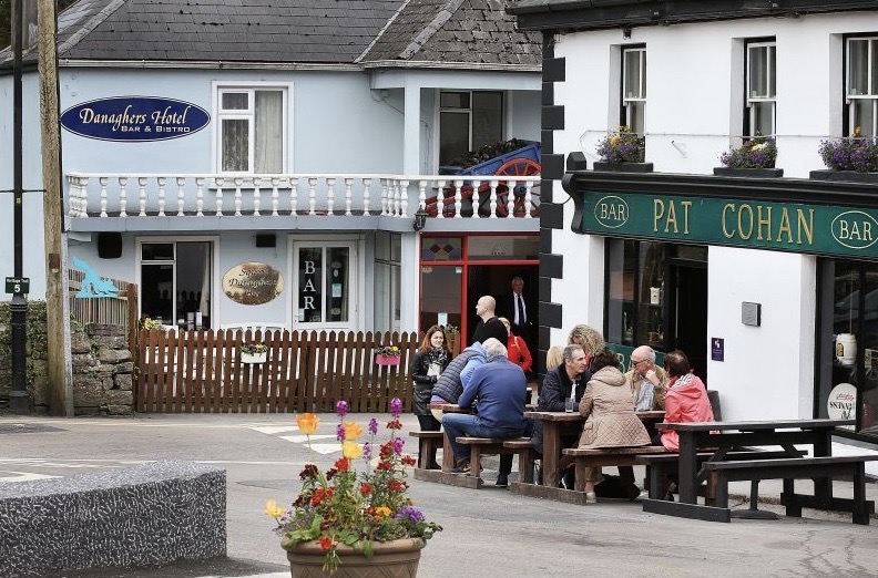 Cohan’s is where Sean and Danaher take a break from their fight, which resumes when the latter comes crashing backwards through the closed front door after throwing a pint of porter in the Yank’s face, for which he gets a piledriver of a punch in his own. The pub didn’t exist: it was actually a dressed-up grocer’s shop and the interiors were shot in Hollywood, so the punch that was thrown in California put Danaher on his backside 5,000 miles away in the street in Cong. The Pat Cohan’s that now welcomes customers opened as a fully-licensed bar in 2008.