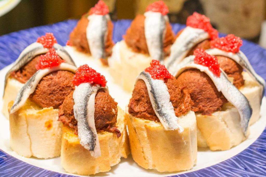 Available in every bar, cafe and restaurant in the country, this winning combination is eaten at all hours of the day as a stop-gap between meals and is best accompanied by an ice-cold glass of lager or a chilled dry sherry.